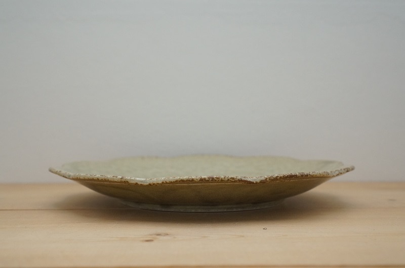 釉薬の分厚くかかった部分は焼成中に流れることがあり、釉薬が垂れたような模様になることがあります。