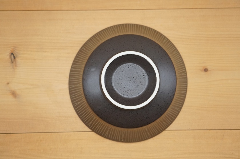 釉薬の分厚くかかった部分は焼成中に流れることがあり、釉薬が垂れたような模様になることがあります。