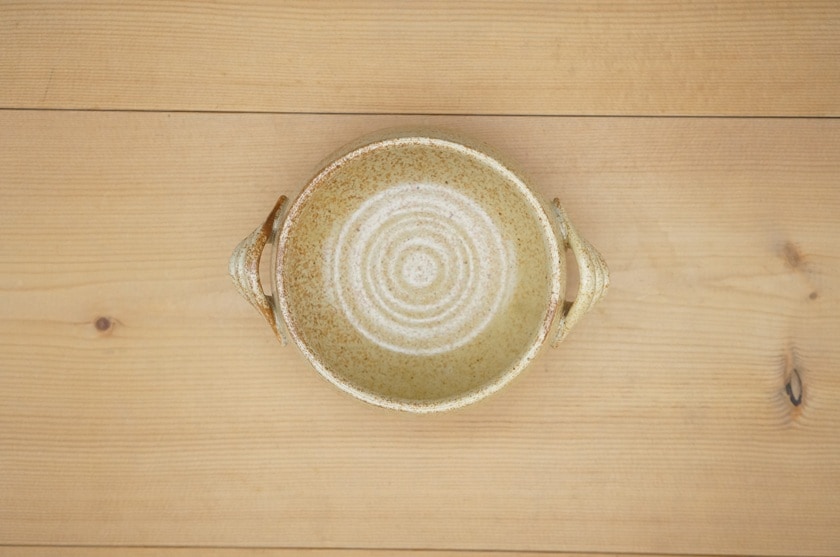 釉薬の分厚くかかった部分は焼成中に流れることがあり、釉薬が垂れたような模様になることがあります。