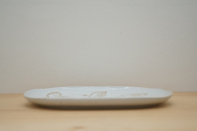 光沢がある白に手作業で鳥の絵柄を施しています。