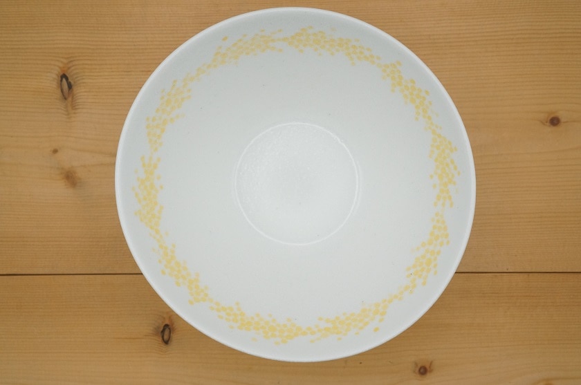 ミモザのお花がリース状に繋がっていて柔らかい雰囲気が食事をしながら癒されそうですね。